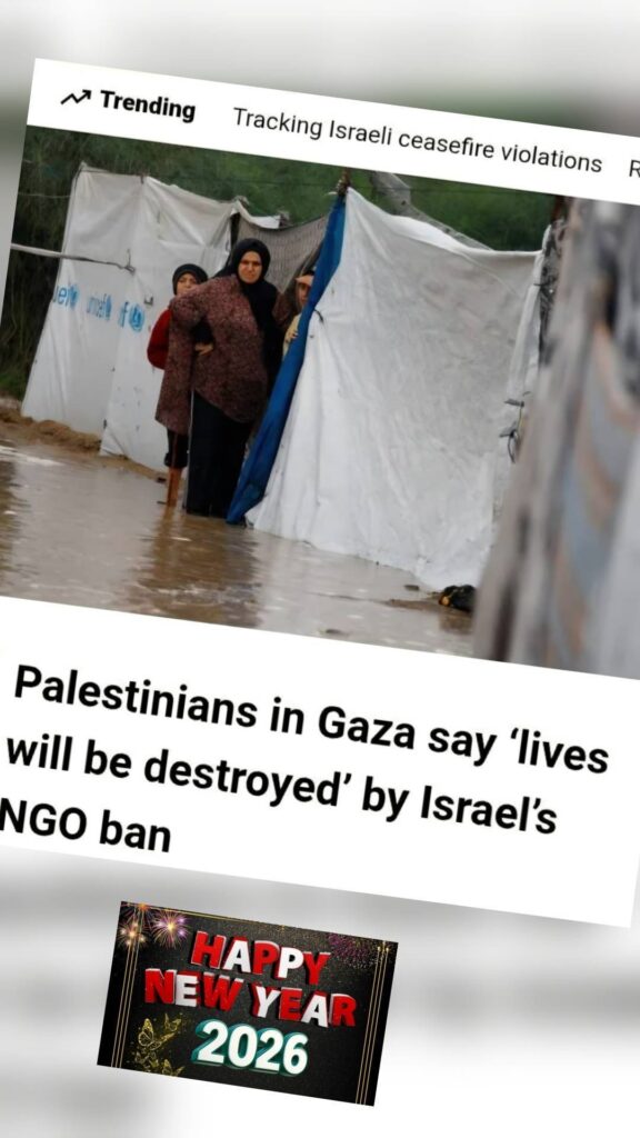 فلسطینیهای غزه میگویند ممنوعیت سازمانهای مردمنهاد توسط اسرائیل «زندگیها را نابود خواهد کرد». الجزیره، 1 ژانویه ۲۰۲۶.